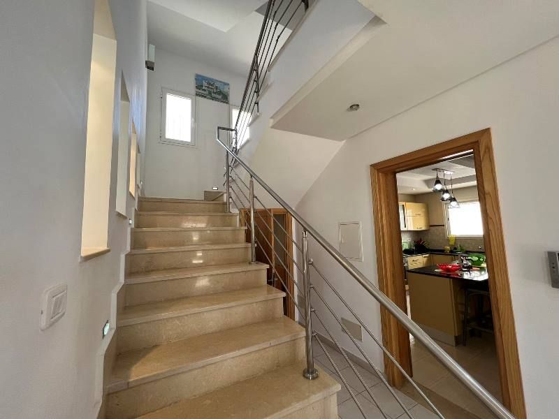 Le rez de chaussée se compose, d’un spacieux salon qui donne sur le jardin et la piscine, une salle à manger, une cuisine moderne bien équipée, une chambre à coucher et une salle d’eau pour les invités.