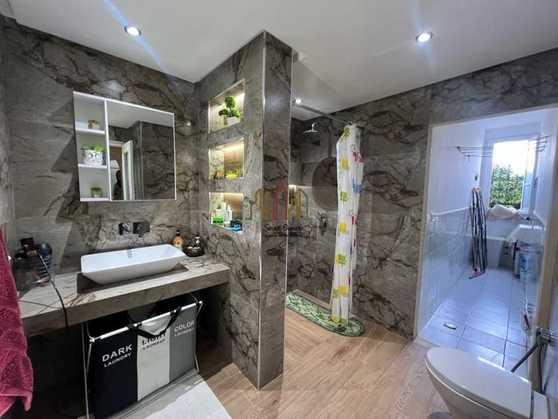 Le rez de chaussée se compose d’un grand salon, un séjour, une cuisine équipée et une salle d’eau d’invités.