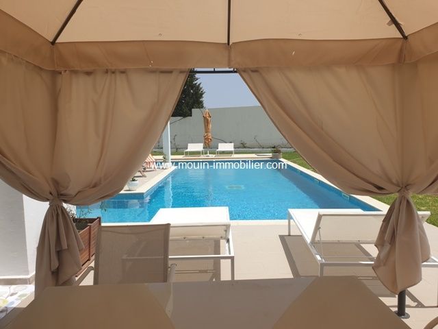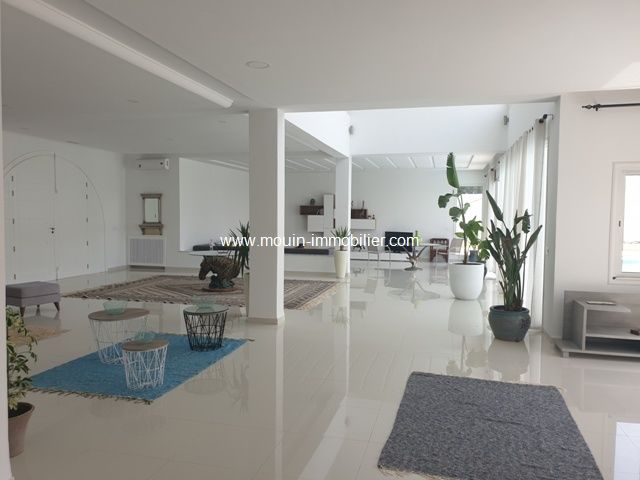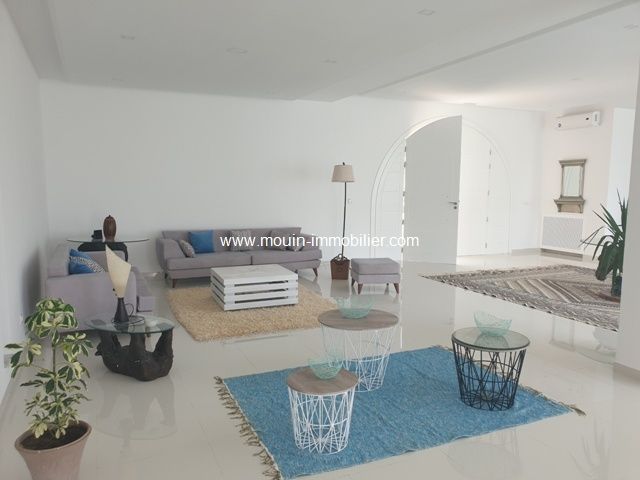 A louer à l'année, une luxueuse demeure d’haut standing située sur les hauteurs d’Hammamet et ayant une superbe vue dégagée sur la verdure et la mer.