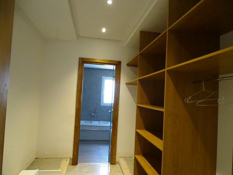 Finalement à l’extérieur, on trouve une splendide piscine débordante, un jardin, une douche, un barbecue aménagé et couvert par une charpente en bois, un loge de gardien, un garage et un parking pour plusieurs voiture sans oublier le sous sol aménager avec un Hammam!