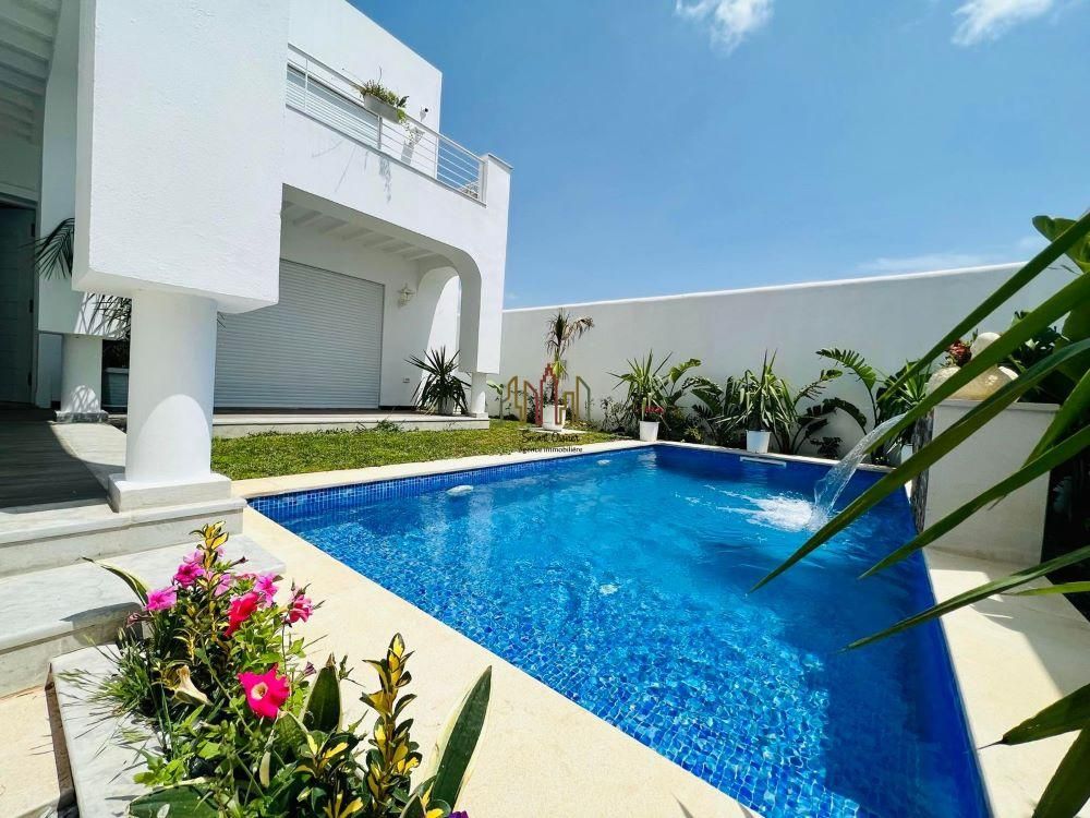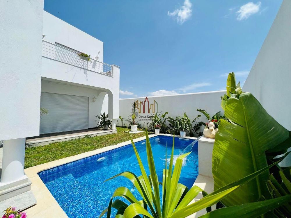 A vendre chez l’agence SMART OWNER immobilière Hammamet, une somptueuse villa nouvellement construite avec des matériaux raffinés, bois noble, sanitaire de qualité, bien située à Hammamet route Bir Bouregba.