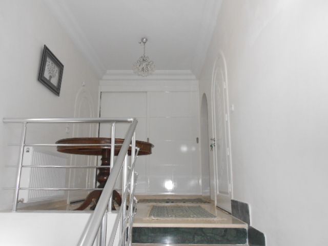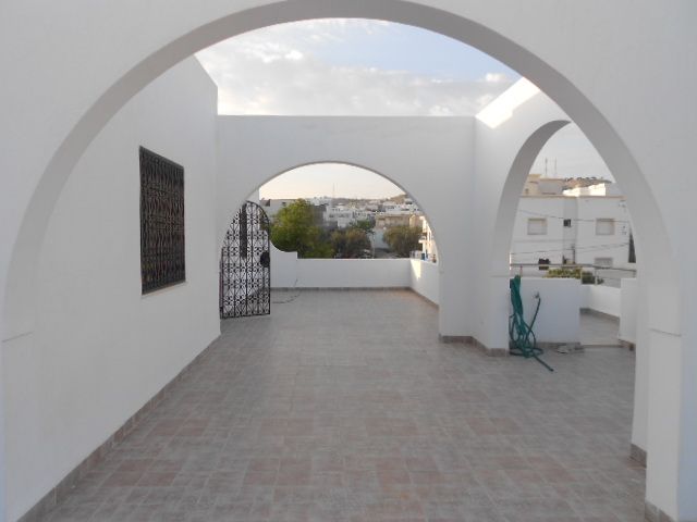 AV à Hammamet et à deux pas de la zone touristique du Royal Azur, une belle villa de haut standing et bien décorée avec un beau jardin et un abri voiture. Composée au rez-de-chaussée d’un grand salon ouvert sur le jardin, un séjour, une cuisine très moderne et bien équipée avec séchoir. La partie nuit du rez-de-chaussée contient deux belles et grandes chambres avec dressings et dotées d’une salle d’eau pour l’une et une salle de bain pour l’autre. A l’étage, deux autres chambres dont une décorée avec une belle coupole en stuc. A ce même étage une grande terrasse avec vue dégagée.