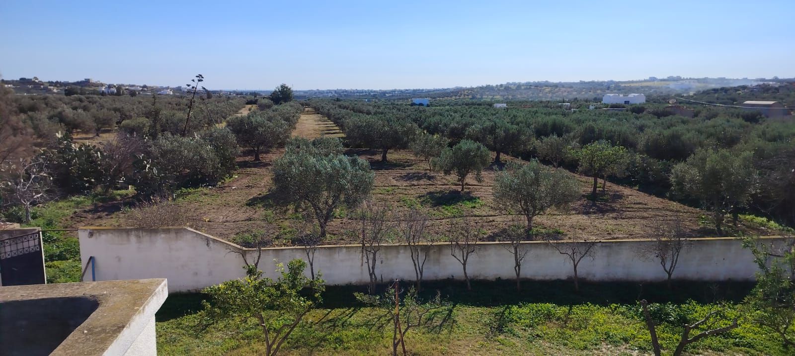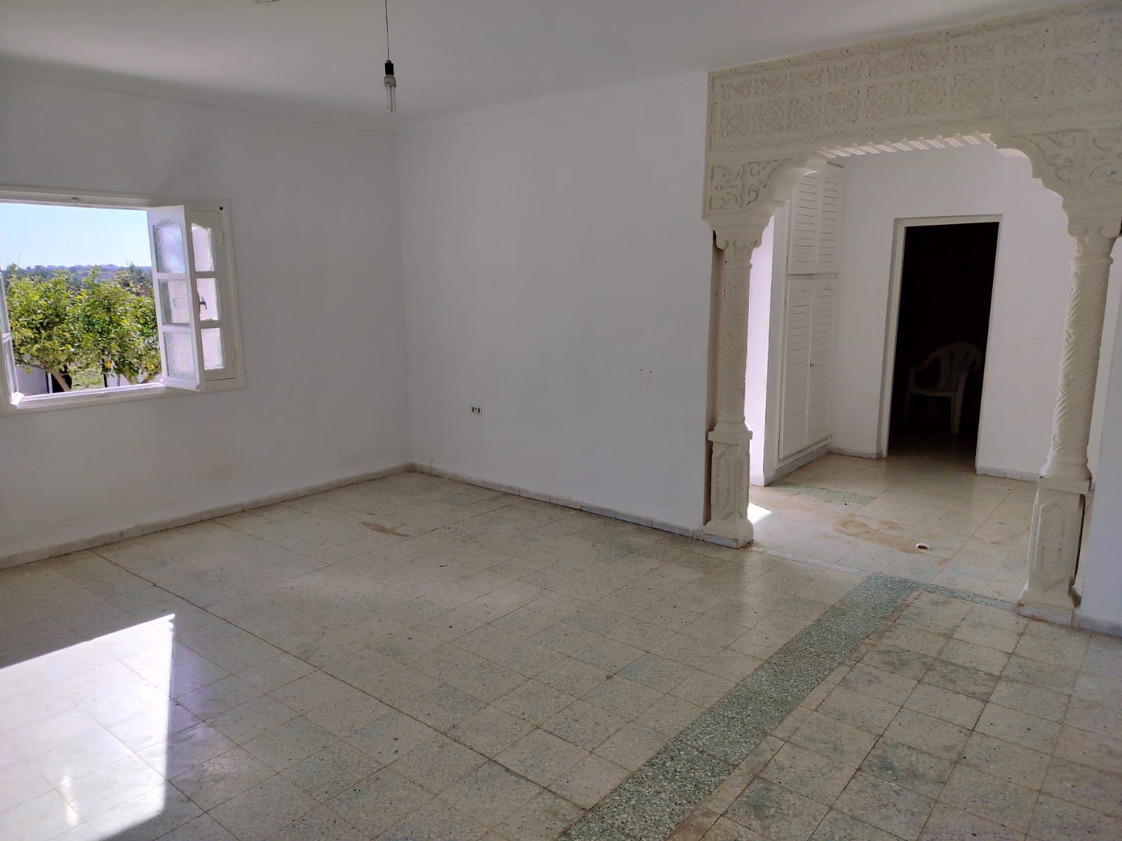 a vendre une maison avec un terrain superficie total :2800m² plantée de 20 olivier se compose d'un salon et trois chambres à couchers et une cuisine et une salle d'eau avec un lot de terrain de 1200m² avec garage et chambre de débarras A Menchar de Hammamet à 10 min de centre ville avec belle vue de montagne