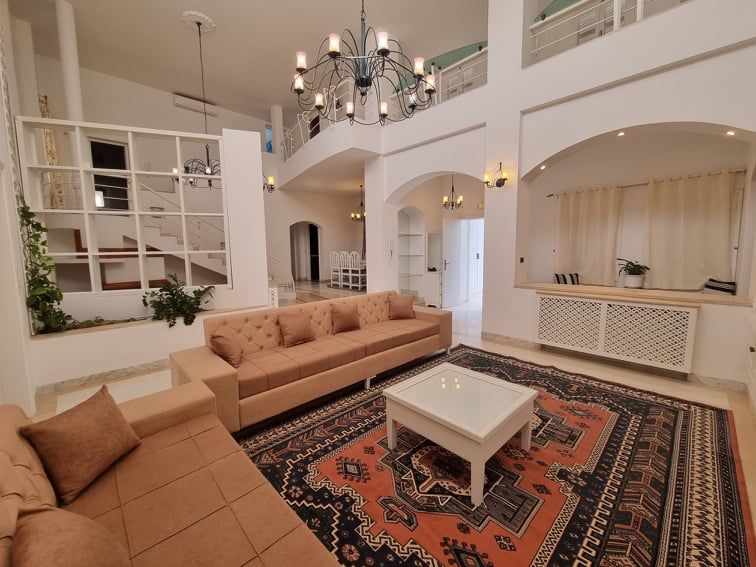 A louer à l'année chez l'agence TPS Immobilière Hammamet, une charmante et spacieuse villa, bien située à Hammamet zone théâtre dans un quartier résidentiel.