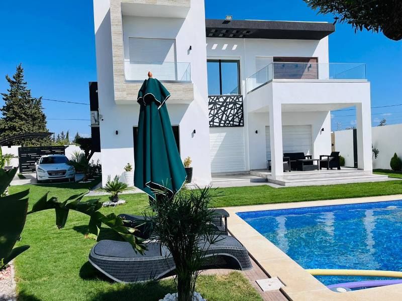 A vendre chez l’agence SMART OWNER immobilière Hammamet, une magnifique villa avec piscine, bien située à Hammamet Sud « El Monchar» à 5 minutes de Yasmine Hammamet.