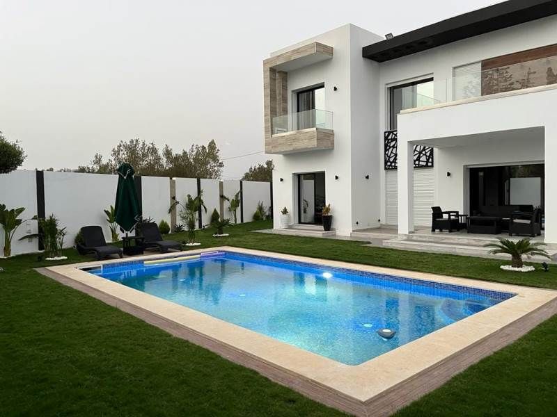 A vendre chez l’agence SMART OWNER immobilière Hammamet, une magnifique villa avec piscine, bien située à Hammamet Sud « El Monchar» à 5 minutes de Yasmine Hammamet.