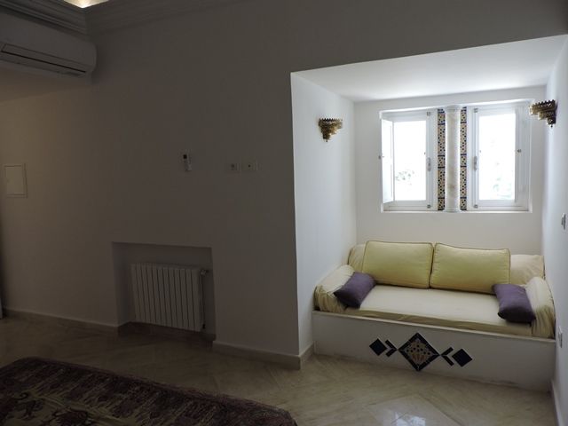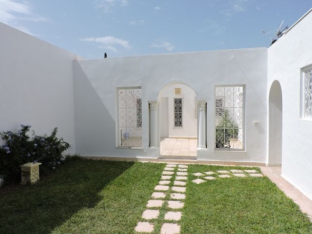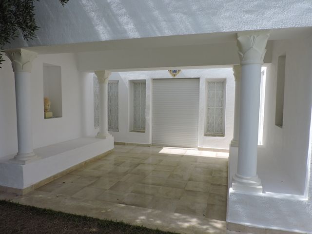 A louer à l’année, une belle demeure de plain pied d’une architecture arabesque avec de belles formes et volumes. Située à Hammamet dans un cadre calme et serein proche des commodités de vies et des hôtels Miramar et Citronniers. Non meublée, la villa offre un spacieux et lumineux salon, trois chambres à coucher, une salle d’eau, une salle de bain, deux suites et une cuisine bien aménagée. La propriété est équipée de chauffage central et de climatisation et elle dispose de belles terrasses, une chambre de service et une piscine entourée d’un superbe jardin gazonné.