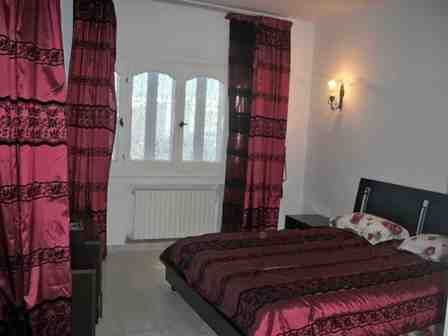 A louer une villa à étage meublée située à Jinen Hammamet avec piscine, quartier très calme et sécurisé, prés de la plage, à 5 minutes de Yasmine Hammamet. Elle se compose de 5 chambres dont une suite parentale avec dressing, 2 salons, salle à manger, 2 salles de bain, 2 salles d’eau, grande cuisine ouverte sur jardin, terrasse, climatiseurs, chauffage central, Interphone, grand jardin gazonné, douche à l’extérieur et garage pour 2 voiture.
