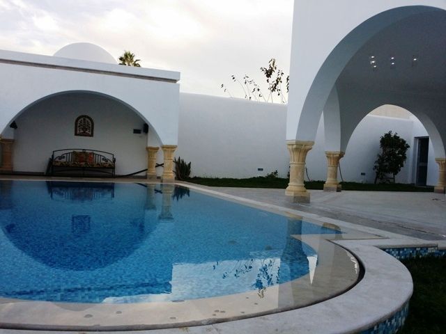 A vendre, une belle villa avec piscine, située dans un quartier résidentiel et chic à Hammamet sur la route de Birbouregba.