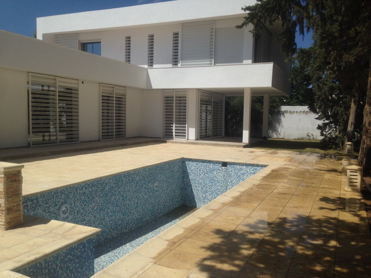 notre agence immobilière met a la location une somptueuse villa avec piscine dans un quartier chic et calme cette belle villa est construite sur un terrain 800 m2 immergé pour une façade qui bénéficier une vue panoramique .la partie jour donne sur un salon et une cuisine agencée est aménagée par l…