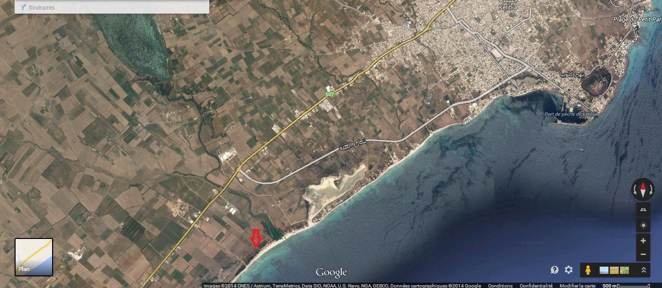 terrain pieds dans l'eau à l'entré de kelibia (prés de ste. zina) endroit calme pour bâtir une belle villa. 400m² a votre disponibilité, à 200 dt le m².