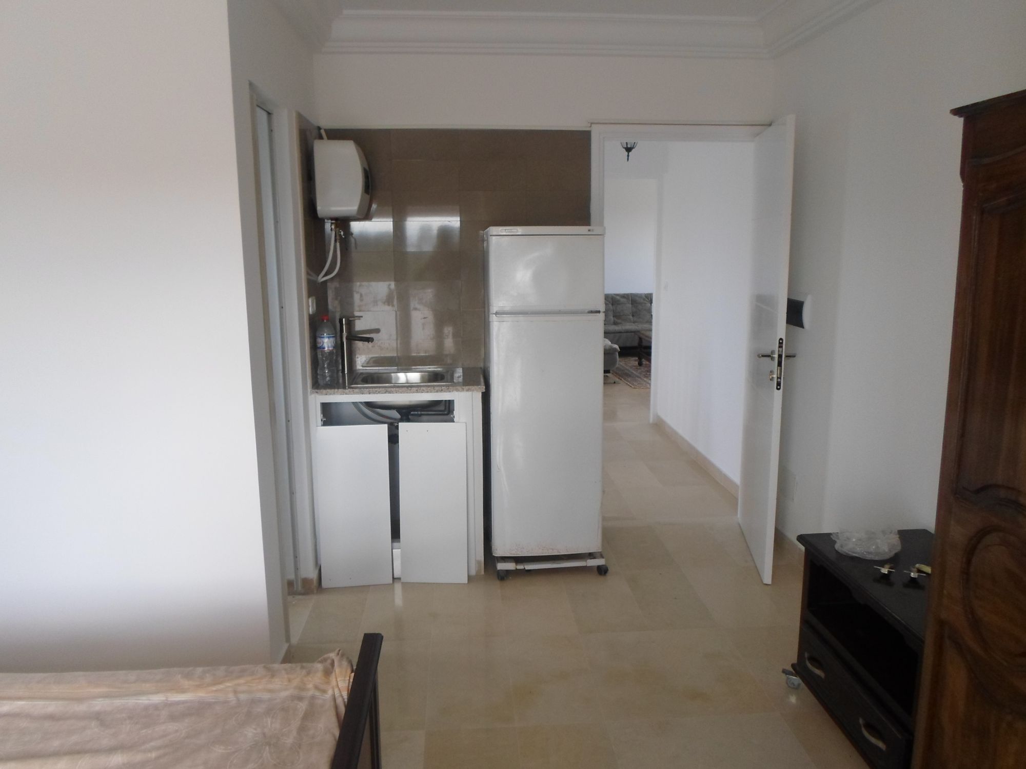 A louer duplex à Hammamet, emplacement très calme avec un bon voisinage, 500m de la mer Ce duplex est composé d’une chambre à coucher + salle d’eau +kitchenette+ un TerracePrix : 500dt /moi