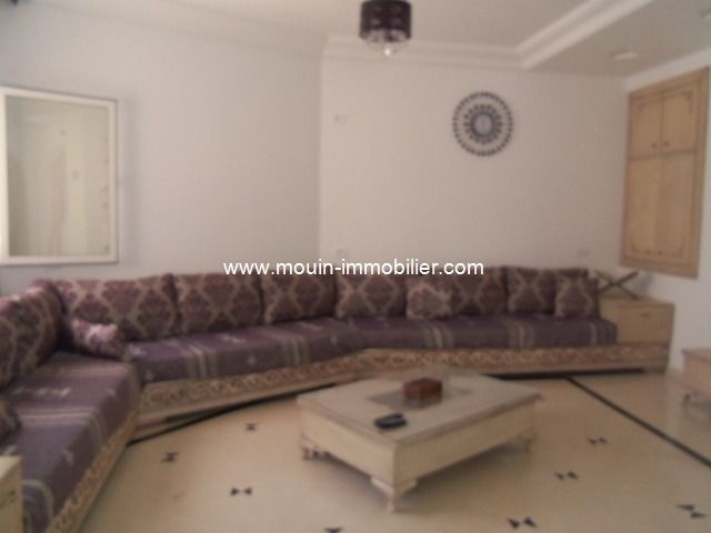 A louer pour des courtes durées, une villa richement meublée située à Hammamet – zone corniche à 300m de la plage.
