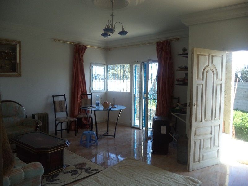 av villa sur 2 niveaux avec grand jardin et abri de voiture ,de 450m2 terrain dont 240m2 couvert située à sidi said de hammamet sud , accessible au l'autoroute , zone calme et en plein nature .