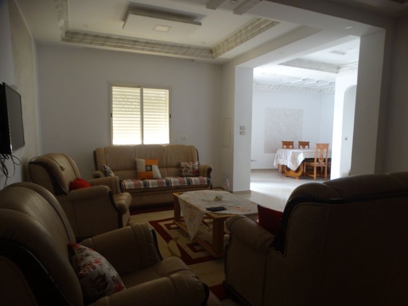 VILLA CHANSON (Réf: L2072)A louer à l'année chez notre agence TPS Immobilière Hammamet, Cette magnifique villa bien située à la zone de Sindbed, elle est composée comme suit :Au rez de chaussée, un grand salon- salle à manger, une cuisine bine équipée et une salle d'eau.A l'étage, trois chambres à c…