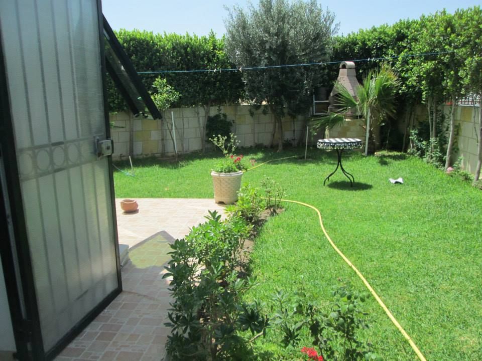 A louer, sur la route principale de l'Aouina, à coté de toutes commodités et nécessités, dans une résidence gardée et sécurisée, un rez de jardin meublé, très bien décoré, contemporain et de haut standing. Ce dernier comprend un jardin avec pelouse bien entretenue faisant le tour de la maison, 3 vastes chambres à coucher chacune avec un grand dressing miroir, lit, commodes, rideaux, portes fenêtres, plasmas et tout ce qui est nécessaire et beau à voir, un séjour avec accès jardin, un salon salle à manger meublées avec baie vitrée donnant sur le jardin, une salle de bain avec baignoire jacuzzi, une cuisine équipée avec courette. La maison se bénéficie de 3 entrées, une principale du salon, une du séjour, et une troisième de la courette de cuisine. La maison contient un chauffage et une climatisation centrale sur toutes les pièces.