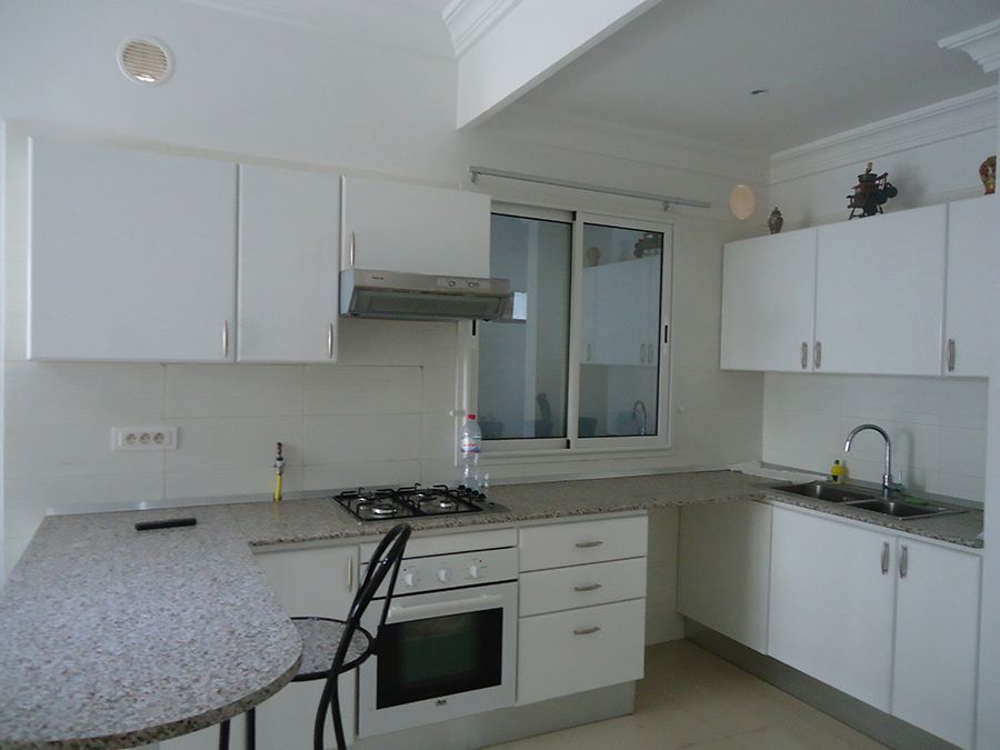 l'agence immobilière met en location à l'année un très beau appartement S+1 au troisième étage et à 100 mètres de la plage , bien meublé , situé à Tantana et à 5minutes de kantaoui dans une résidence calme et gardée 24/24.