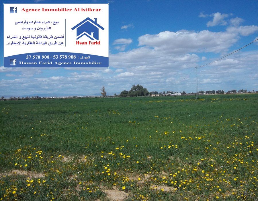 أرض فلاحية بيضاء مساحتها 11.5 هكتار خلف منتزه السقني و تبعد على مدينة القيروان 1 كلم بها بئر و بها شهادة ملكية انفرادية الثمن 30 مليون الهكتار الواحد