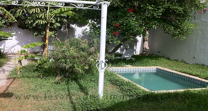 Coquette villa style typique, dispose d’un salon, une chambre à coucher, cuisine, salle d’eau et chambre suite