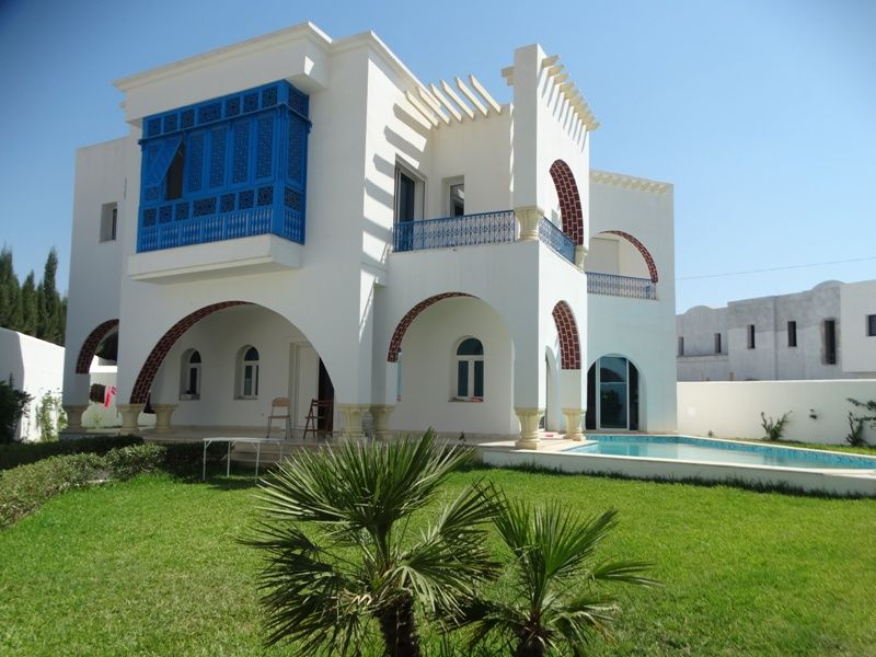 A vendre chez l'agence TPS Immobilière Hammamet, une villa avec piscine alliant le style moderne avec le style arabesque, située à Hammamet route sidi Hammed dans un quartier calme et résidentiel.