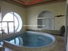 Une piscine intérieure chauffée avec Jacuzzi, jette d’eau et un espace de bien-être.