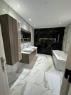 Quant à l’étage, on trouve une suite parentale, deux chambres à coucher et une salle de bain commune.