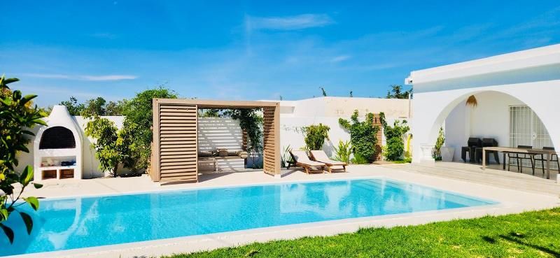 A vendre chez l’agence SMART OWNER immobilière Hammamet, une magnifique villa de plain pied avec piscine située dans un quartier calme à Hammamet Sud zone El Monchar.