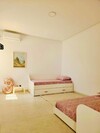 La villa se compose d’un spacieux et lumineux salon donnant sur la piscine, une cuisine moderne bien équipée, une suite parentale avec sa propre salle de bain et dressing, deux chambres à coucher avec une salle de bain commune.