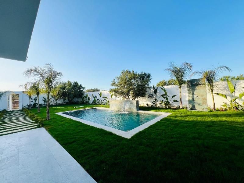 A vendre chez l’agence SMART OWNER immobilière Hammamet, une luxueuse villa de très haut standing nouvellement construite sur un terrain de 700 m², située dans un quartier résidentiel calme et bien sécurisé à Hammamet Sud zone El Bessbessia.