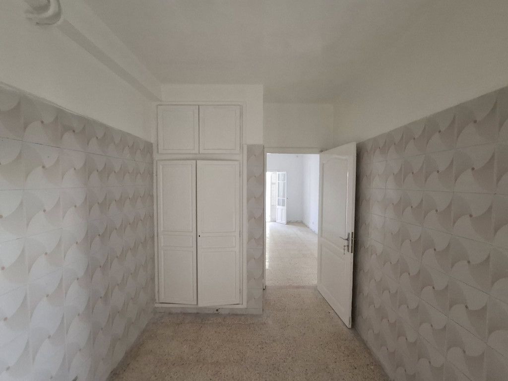 Appartement S+2 au rez-de-chaussée situé à Mourouj 5, près du centre Challeck. Il comprend un salon lumineux, deux chambres, une cuisine indépendante avec placard et séchoir, une salle de bain et des WC séparés. Le gaz de ville est disponible. L’appartement est fraîchement repeint et prêt à habiter. Une place de parking privée est incluse. Idéal pour un jeune couple ou pour un investissement.